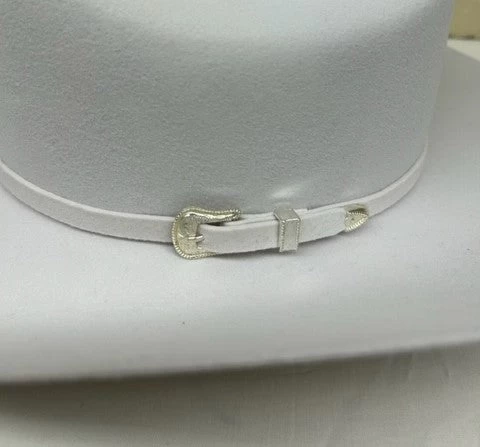 Self felt band with a silver buckle set.