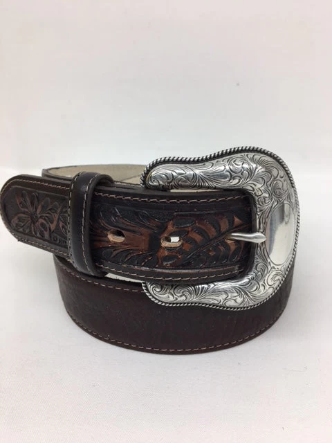 Montana Chocolate Brown belt with tooled ends