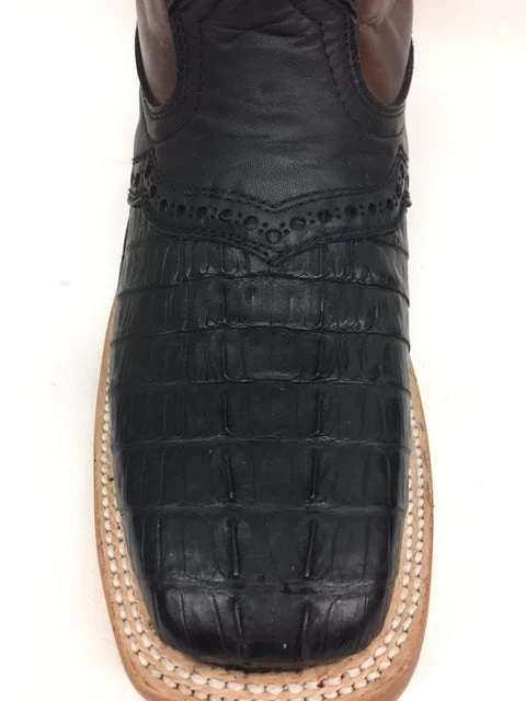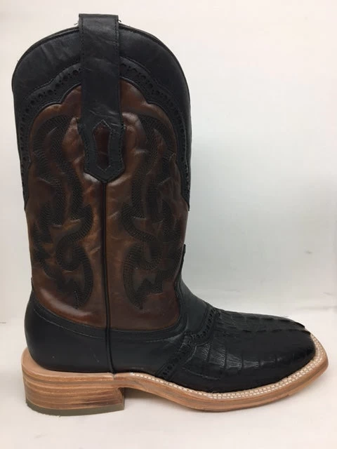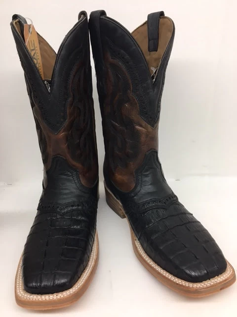 Black Caiman Wide Square Toe, with overlay and black calf heel counter.