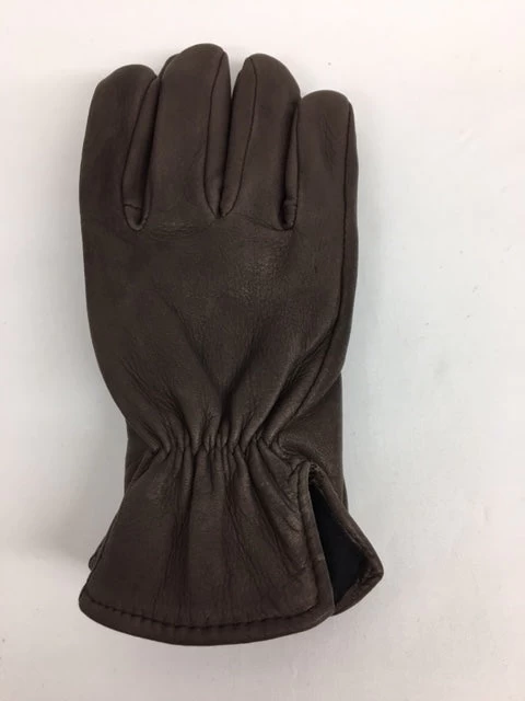 Brown deerskin gloves lined with a 380 gram 100% polyester Nordic Fleece.