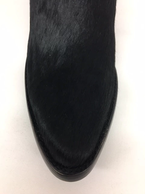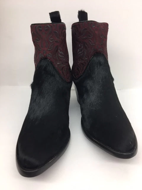 Women’s Black Hair on cowhide and dark wine suede with black embroidery.