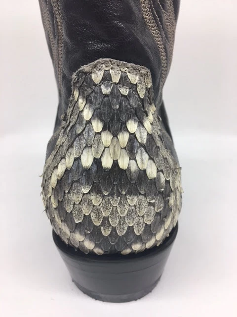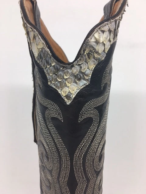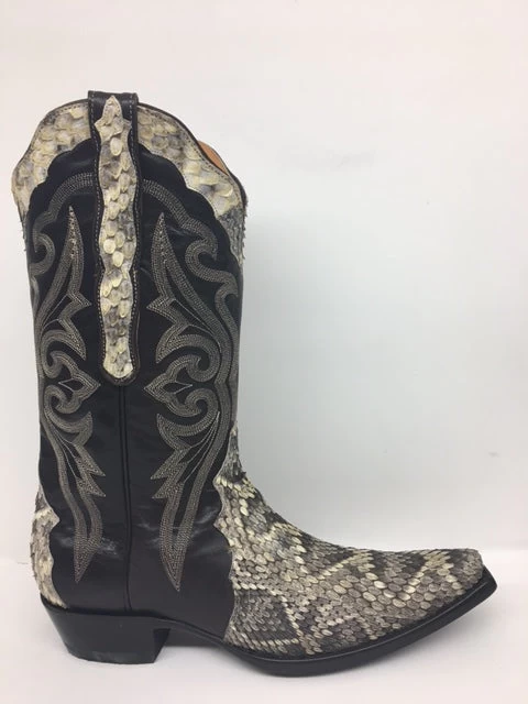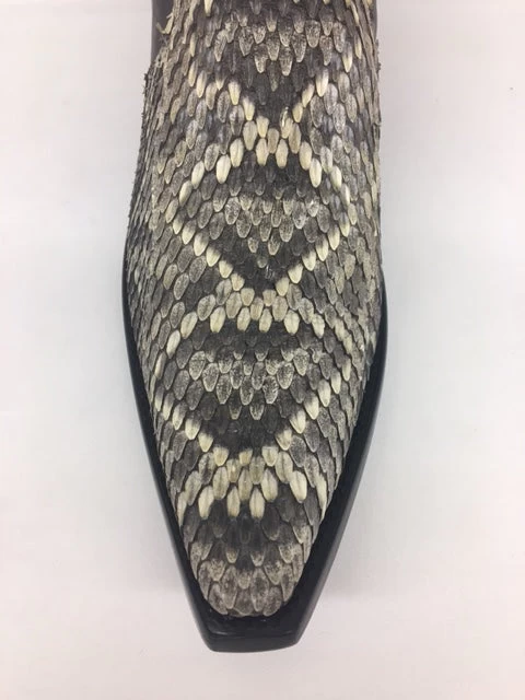 Natural Rattlesnake triad vamp and heel counter with chocolate calf uppers.