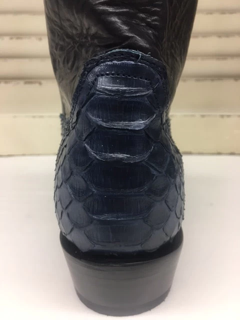 Blue/Black Python with black buffalo calf, butter soft uppers.