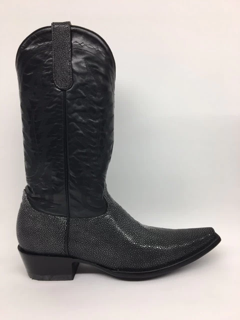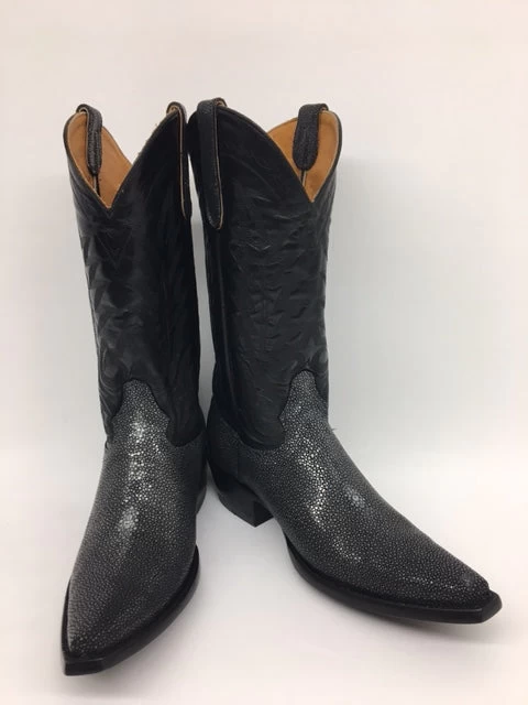 Grey/Black shaved Stingray with black buffalo calf, butter soft uppers.