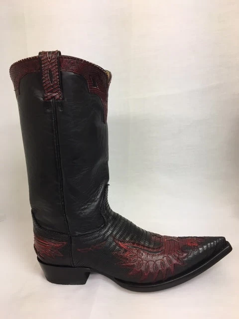 The Eagle features lizard in black with the eagle inlay in red lizard.