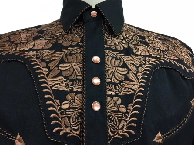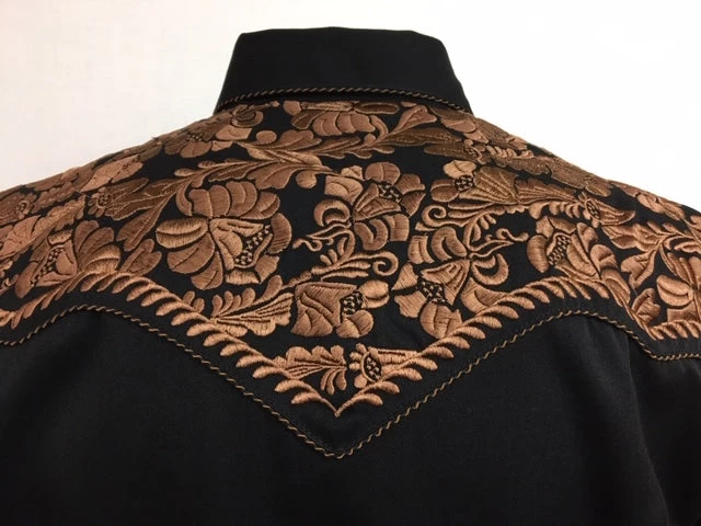 Black shirt with Floral Tooled Embroidery