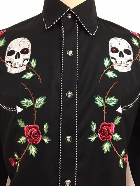 SKU: YM9VD 4555119525941 Categories: Men's Shirts, SHIRTS Tags: Black shirt, Embroidered shirt, Men's shirt, Retro shirt, Scully, Shirt, Skulls and roses, Western shirt