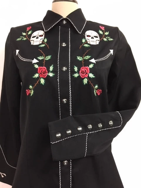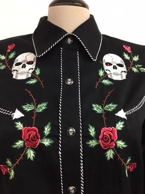 SKU: YM9VD 4541339533365 Categories: SHIRTS, Women's Shirts Tags: Black shirt, Embroidered shirt, Ladies shirt, Retro shirt, Scully, Shirt, Skulls and roses, Western shirt, Women's Shirt